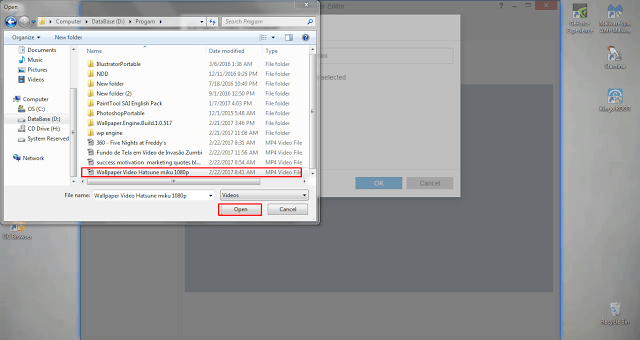4. Lalu akan terbuka windows explorer, silahkan dipilih video yang kalian ingin jadikan wallpaper dan klik open. Disini nanti videonya akan berputar di background layar kalian, untuk mencari video-video yang keren, kalian bisa mengunduh videonya dari youtube. Mau tau gimana cara gampang download video dari youtube? Silakan kalian klik disini: [Pengunduh Youtube Online tanpa Software]