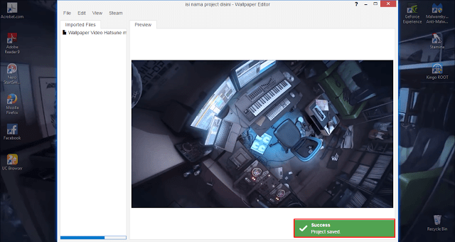 7. Setelah itu akan ada tampilan sukses, dan selanjutnya tinggal klik pada project yang baru saja kalian buat dan klik OK, wallpaper Engine video pilihan kalian akan mulai aktif.