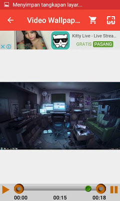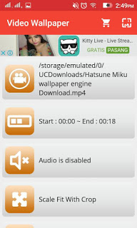 5. Tampilan aplikasinya akan seperti gambar di bawah, Pilih setel wallpaper atau yang paling atas. Karena digambar tersebut mimin udah ngebuat wallpaper jadi tampilannya seperti itu, tapi bagi yang belum setel wallpaper video-nya tampilannya adalah “Set/setel Wallpaper”.