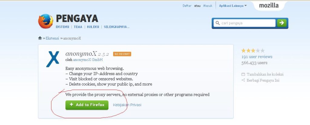 2. lalu klik +add to firefox, screenshootnya dibawah