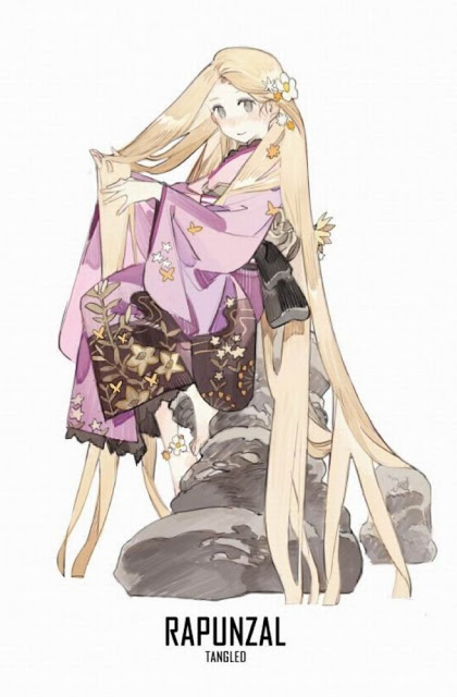 Ilustrator Ubah Penampilan Karakter Disney Menjadi Putri Anime Yang Cantik & Kawaii mengenakan Kimono
